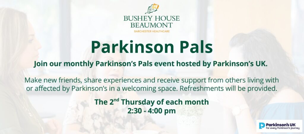 Parkinson’s Pals Bushey meets on the second Thursday of the month from 2.30pm – 4pm. Make new friends, share experiences and receive support from others living with or affected by Parkinson’s in a welcoming space. Refreshments will be provided. At Bushey House Beaumont Care Home, High Street, Bushey, WD23 1QN. Until at least September.