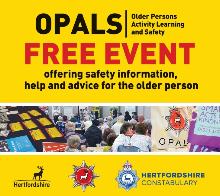 Older persons activity, learning and safety (OPALS) events are sociable, seated events where you can get quality advice and help on a wide range of services available. As well as giving reassuring safety and wellbeing support, the event includes an opportunity to meet other residents in your area, safety related freebies and representatives from a variety of agencies giving advice on the services they offer. Tuesday 9th June from 10am – 2pm, at Watersmeet Theatre, High Street, Rickmansworth, WD3 1EH.