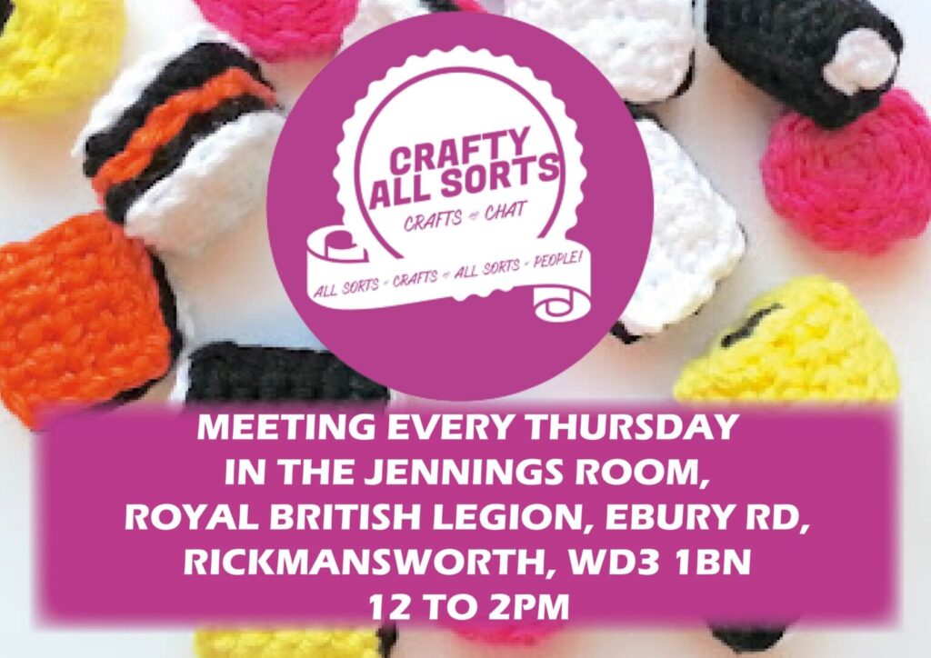 Come along for crafting, chat and cake every Thursday from 12 noon – 2pm, at Royal British Legion Club, Ebury Road, Rickmansworth WD3 1BN. Until at least end of August 2026.