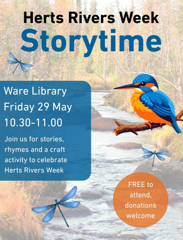 Join Ware Library, High Street, Ware, SG12 9BA, on Friday 29th May from 10.30am – 11am, for a very special Storytime session. They will be celebrating all things rivers in the beautiful River Lea inspired children’s library, as it is Herts Rivers Week. They will have river themed stories and rhymes, with a special craft activity too. Storytime is free to attend, however spaces are limited, so they recommend arriving early.