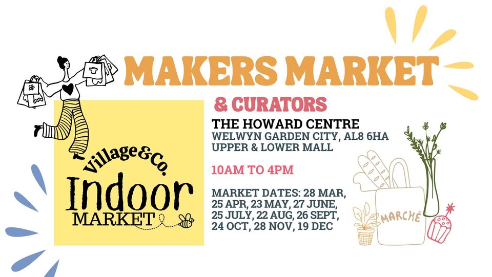 If you love unique, high quality, beautifully made crafts, homewares, baked goods, jewellery, art and loads more then this is for you. The market is spread out over both the upper and lower malls of The Howard Centre, Howardsgate, Welwyn Garden City, AL8 6HA. Fourth Saturday every month from 10am – 4pm.