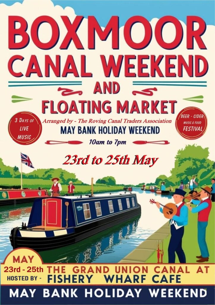 Boxmoor’s canal weekend is held over the last bank holiday weekend in May. Fishery Wharf Café will play host to a weekend of live music alongside the colourful Herts Roving Canal Traders three-day floating boat market, situated between Fishery Lock and Old Fishery Lane Bridge. Come along to listen to the music, sample the delicious café food and freshly made to order pizza, enjoy a drink from our licensed bar and stroll along the canal, soaking up the colour’ and atmosphere of the three day floating market as you peruse and purchase some beautiful gifts and handmade items. Three days of Blues, Folk and Roots music performed on the canal-side open-air stage at Fishery Wharf Café Canal Lock, This is an ideal event for families and an excellent chance for children to see some first-class music. Saturday 23rd – Monday 25th May from 10am – 7pm. At Fishery Lock, Hemel Hempstead, HP1 1NE.
