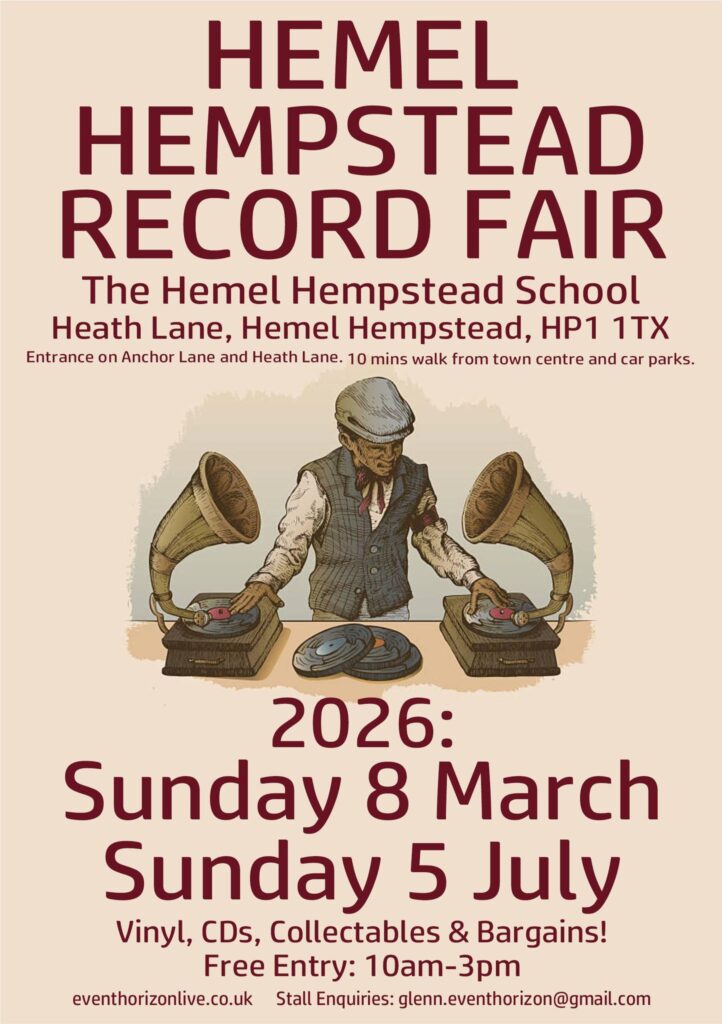 Whether you are a seasoned collector or just starting out, you have the chance to have a good look through thousands of vinyl records, CDs and collectibles from a wealth of dealers all under one roof. From reggae to heavy metal, soul to glam rock there will be something for everyone on sale. Pick up that rarity that’s been eluding you for years or catch a bargain, sellers are there to buy, sell or trade. At The Hemel Hempstead School, Heath Lane, Hemel Hempstead, HP1 1TX. Sunday 5th July from 10am – 3pm.
