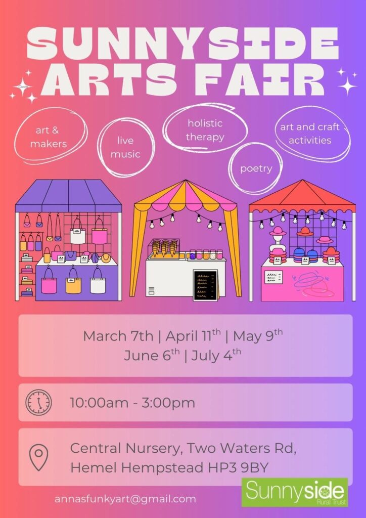 An incredible day of Live music, art makers, craft, bakers, poets and holistic therapists at the friendly, fun Sunnyside Arts Fair. Free entry and a great day out for all the family. Saturday from 10am – 3pm. At Sunnyside Up Cafe and Farm Shop, Two Waters Road, Hemel Hempstead, HP3 9BY.